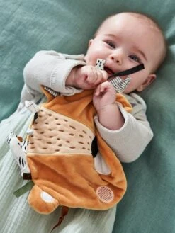 Doudou En Gaze De Coton + Hochet En Bois PETIT DINO Multicolore – Vertbaudet