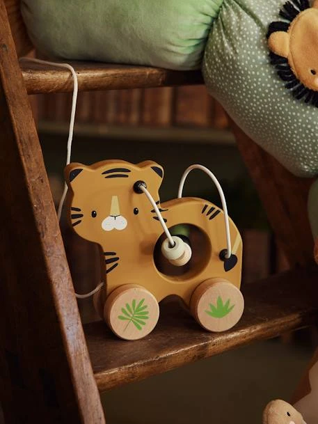- Coffret 3 jouets : un mini boulier tigre à roulettes, une boite des formes à encastrer, une pyramide à empiler panda