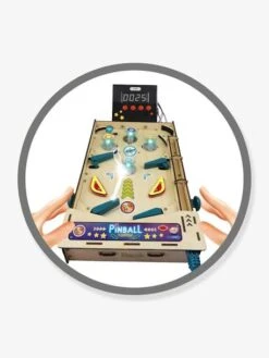 Avec le tournevis inclus, votre enfant assemble les éléments pour construire son flipper. Il branche les composants avec les connecteurs sans soudure : bumpers, diodes lumineuses et tableau des scores. Il peut même personnaliser son flipper avec les autocollants.