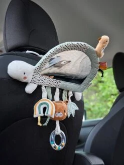 Une tortue aux 1000 surprises que bébé va aimer toucher, secouer, mordiller ! Vous pouvez selon vos besoins la poser sur une surface ou l’attacher au siège d’une voiture grâce aux différents systèmes de pose et de fixation. Des textures, des couleurs, des petits bruits… les sens des petits seront tendrement stimulés !