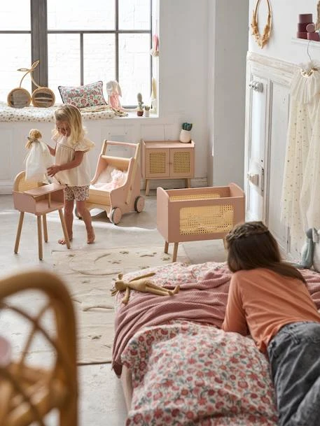Un lit de poupée dans l’air du temps avec sa jolie couleur rose et son cannage. De quoi créer un joli nid à sa poupée tout en apportant un style romantique à la déco de chambre !