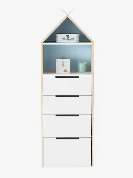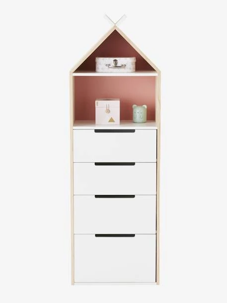 Parfait pour ranger les habits, les jouets ou autres petits trésors de votre enfant, ce semainier en forme de tipi donnera des airs de camp indien à la chambre ! Surprise ! Le fond du semainier est réversible ! Rose ou bleu, à vous de choisir selon votre déco. Ce meuble de rangement fait partie de la ligne Tipili, composée également d’un lit et d’un chevet.