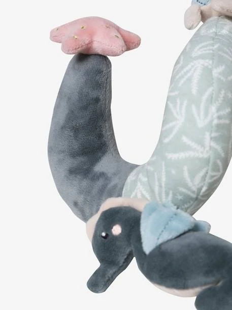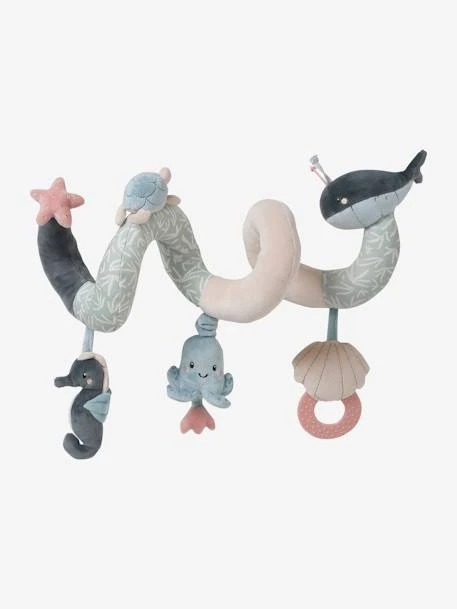 Toujours prête à s’enrouler pour émerveiller les bébés, cette spirale d’activités Sous l’océan a plus d’un tour ! En velours tout doux, elle amusera votre enfant grâce à de petits jouets : une pieuvre vibrante, 1 coquillage avec anneau de dentition, 1 hippocampe avec des billes, des jouets en volume … Les différentes couleurs et textures de cette spirale d’activités participeront à l’éveil des sens des tout-petits. Cette spirale s’enroule sur la anse d’un cosy ou sur le bord du parc ou du lit et promet à l’enfant de superbes découvertes !