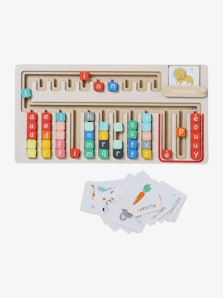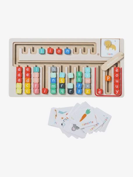 L’enfant peut écrire librement ou reconstituer les mots représentés sur les cartes en faisant glisser les lettres sur la tablette. Pour maitriser le niveau de difficulté, il est possible de cacher ou non le mot inscrit sur la carte. Consonnes et voyelles sont représentées par des couleurs distinctes : les voyelles en rouge, les consonnes multicolores. Un jeu amusant pour apprendre à écrire mais aussi à lire.