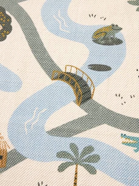 Ce tapis circuit nous embarque pour un trek à travers la jungle ! On y retrouve quelques reptiles et différentes habitations pour voyager sans sortir de la chambre. Les enfants apprécieront se poser et jouer sur ce tapis amusant et coloré !